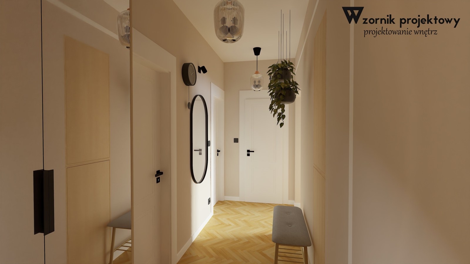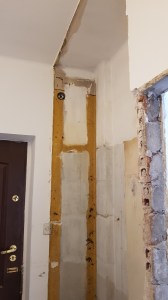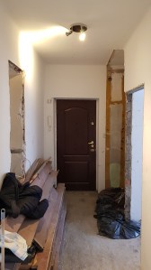 Zakres prac obejmował odświeżenie korytarza oraz aranżację niedużego pokoju tak, aby znalazło się miejsce na część wypoczynkową oraz aneks kuchenny z częścią jadalnianą. Jak wspomniałam, pomieszczenie było niedużych rozmiarów, zatem trzeba było iść na pewne kompromisy.