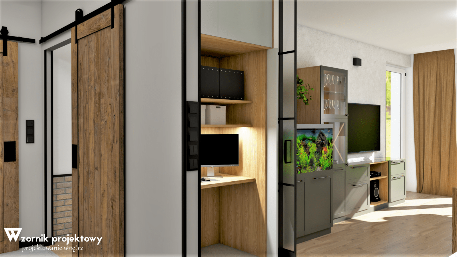 W trakcie projektu klient zaproponował zmianę drzwi na przesuwne i to był naprawdę świetny pomysł. Teraz wszyscy czekamy tylko na koniec remontu 🙂