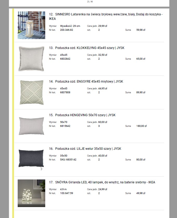 zakres doboru listy dekoracji: